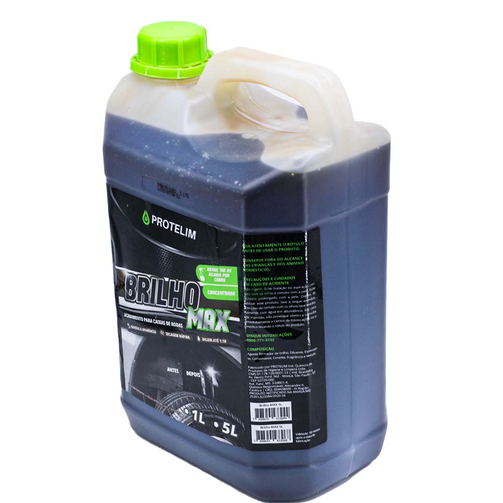 Brilho Max foi desenvolvido para o acabamento de caixas de roda e tapetes de borracha. Sua fórmula oferece renovação, proteção e brilho duradouro para as caixas de rodas. É um produto à base de água, sem solventes.